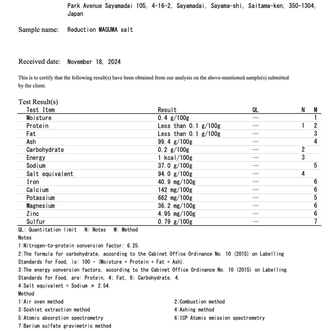ナトリウム:37.0g / 食塩相当量:94.0g / 灰分:99.4g